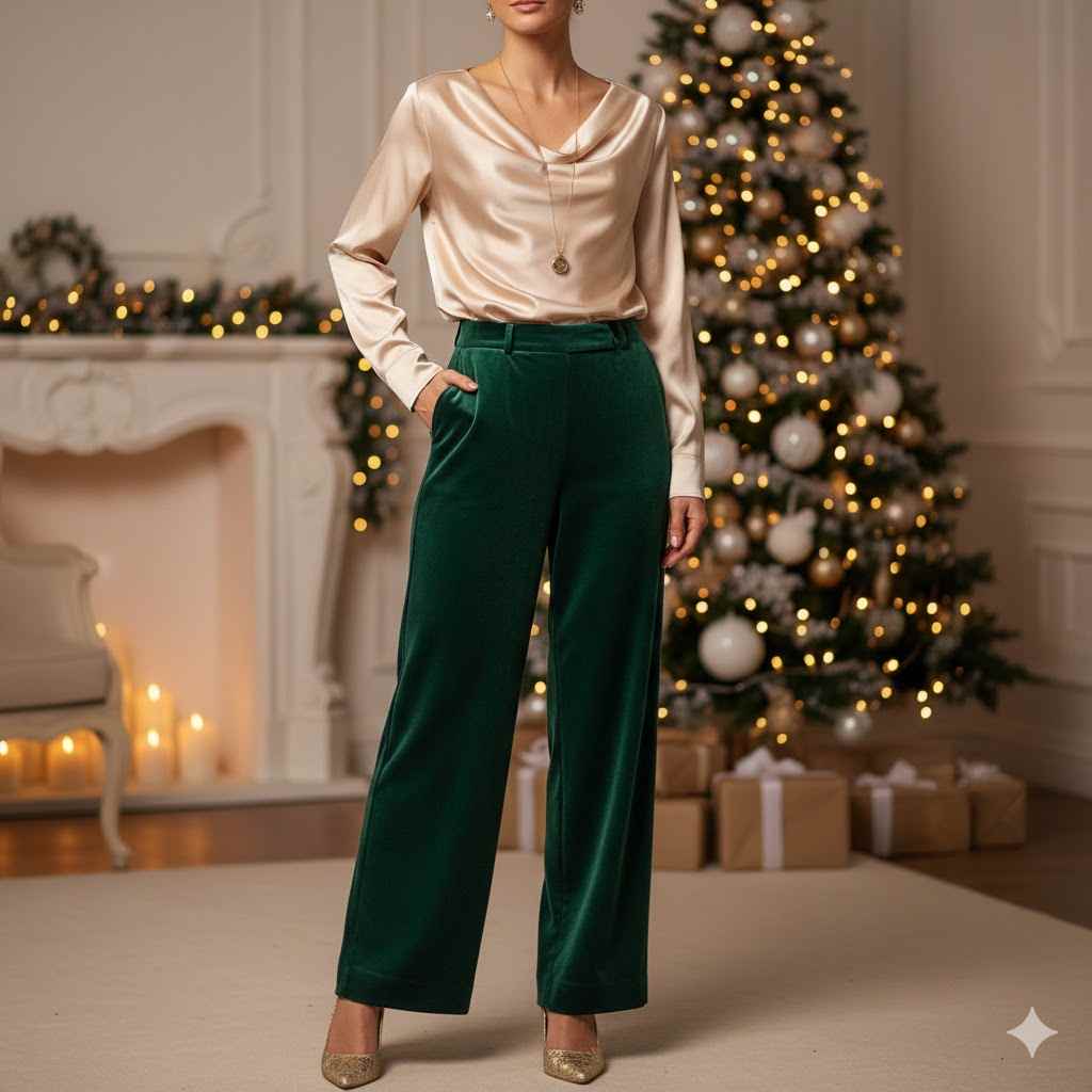 10. Satin Blouse with Wide-Leg Trousers for Sophisticated Christmas Eve Outfits