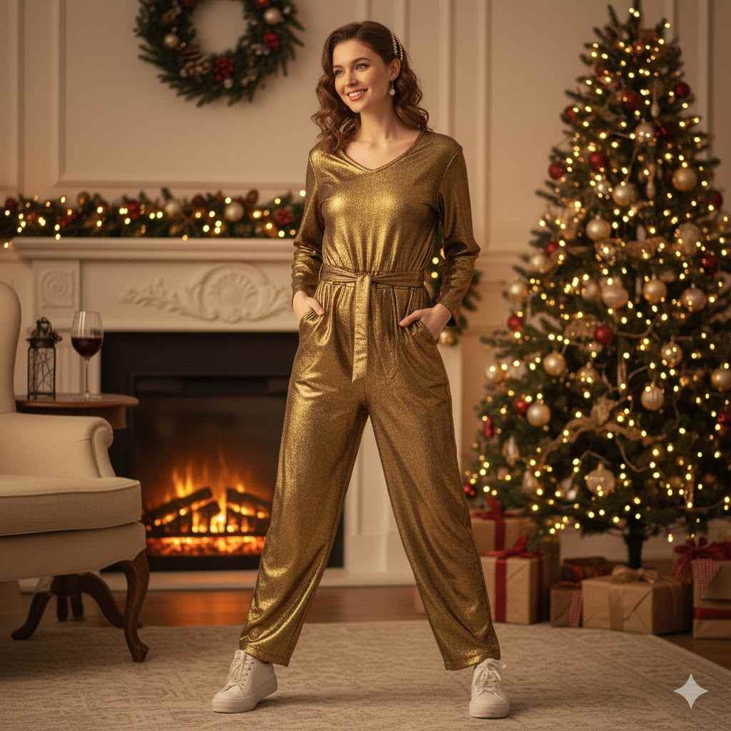 15. Metallic Jumpsuit for Bold Christmas Eve Outfits
